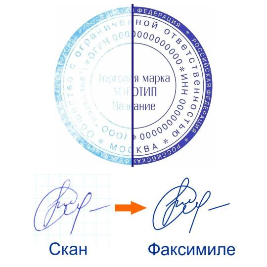 Факсимиле 1 400 Р Автоматическая оснастка (подбирается под размер подписи) + оттиск (материал: резина).
